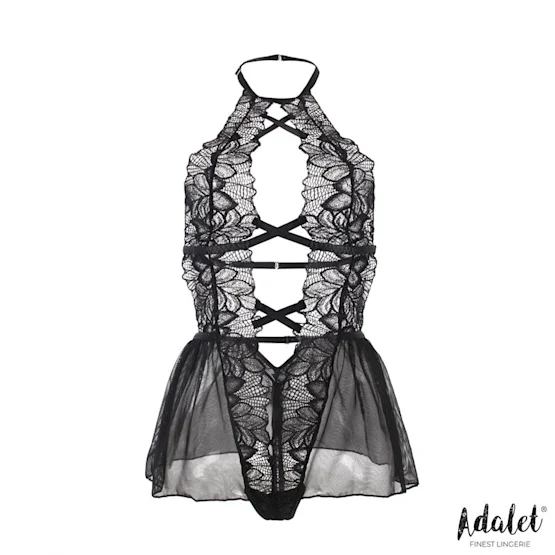 O Body Ariella da Adalet é a lingerie ideal para realçar a tua confiança e feminilidade. Com um design semitransparente, apresenta alças cruzadas e um decote frente única que valorizam as tuas curvas com elegância. A área tipo saia no quadril adiciona um toque sofisticado e feminino. Disponível nos tamanhos S/M e L/XL, é confeccionado em 95% poliéster e 5% elastano, oferecendo conforto e um ajuste perfeito. Sente-te única e irresistível com Adalet, destacando a tua beleza natural com estilo e sofisticação.