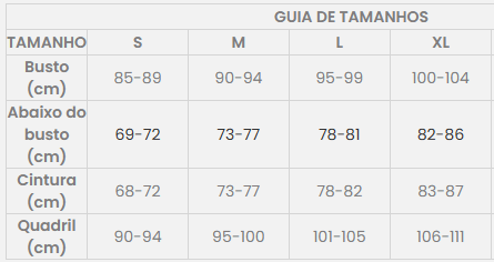 Consulta o guia de tamanhos e mede busto, cintura e quadril para um ajuste mais preciso.
