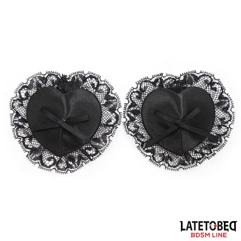 Sensualidade aprimorada: A máscara de seda e renda semitransparente, combinada com os protetores de mamilo em forma de coração, cria uma atmosfera sedutora, intensificando o prazer visual e tátil.