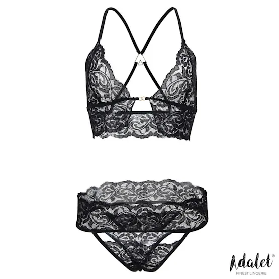 Desperte os sentidos com o Conjunto Ella da Adalet! Este conjunto inclui um sutiã sem fio com alças provocantes e uma tanga erótica com cós em renda e design aberto, adicionando um toque de ousadia. O conjunto é completado com uma máscara e algemas de renda, ideais para jogos de prazer. Disponível em tamanhos S-M e L-XL, é feito de 89% náilon e 11% elastano, garantindo conforto e sensualidade. Com Adalet, sinta-se poderosa e confiante, transformando qualquer momento numa experiência de pura sedução e prazer.