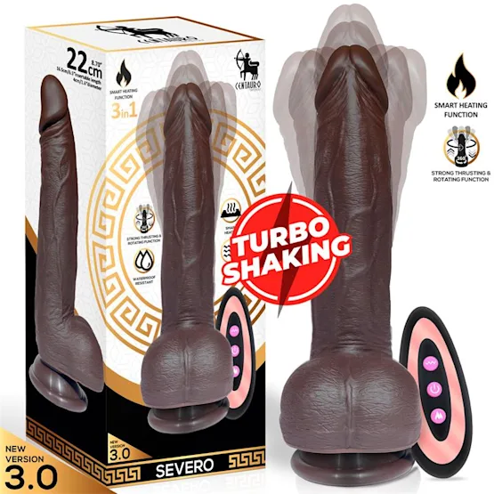 O Severo da Centauro é um vibrador realista inovador com design hiper-realista, incluindo veias proeminentes e uma glande rosada. Destaca-se pela funcionalidade Turbo Shaking, que oferece movimentos intensos de rotação de 360º e impulso, além de 9 funções vibratórias. O Severo possui uma função de aquecimento inteligente para uma sensação realista e vem com controlo remoto sem fios. Feito em silicone líquido de alta qualidade, é recarregável via USB e à prova de água. Medidas inseríveis: 16,5 cm x 4 cm.