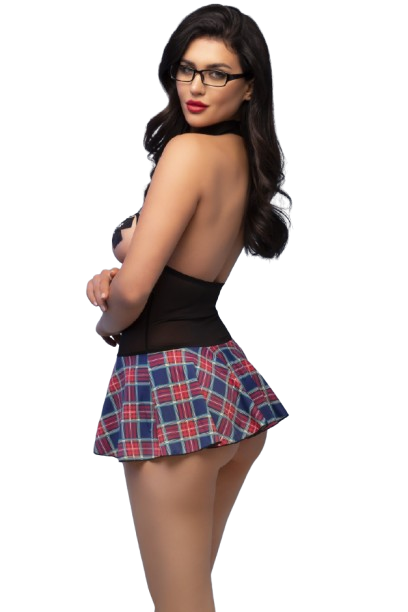 Transforma as tuas fantasias em realidade com este provocante Fato de Estudante (5 peças). Ideal para apimentar a relação ou surpreender com um toque ousado, o conjunto inclui tudo o que precisas: óculos, gravata, mini vestido sensual, tanga xadrez e tapa mamilos. Feito com materiais de alta qualidade (90% poliamida e 10% elastano), oferece conforto e flexibilidade. Apresentado numa elegante caixa, este fato é perfeito para quem deseja elevar a sedução com criatividade e diversão.
